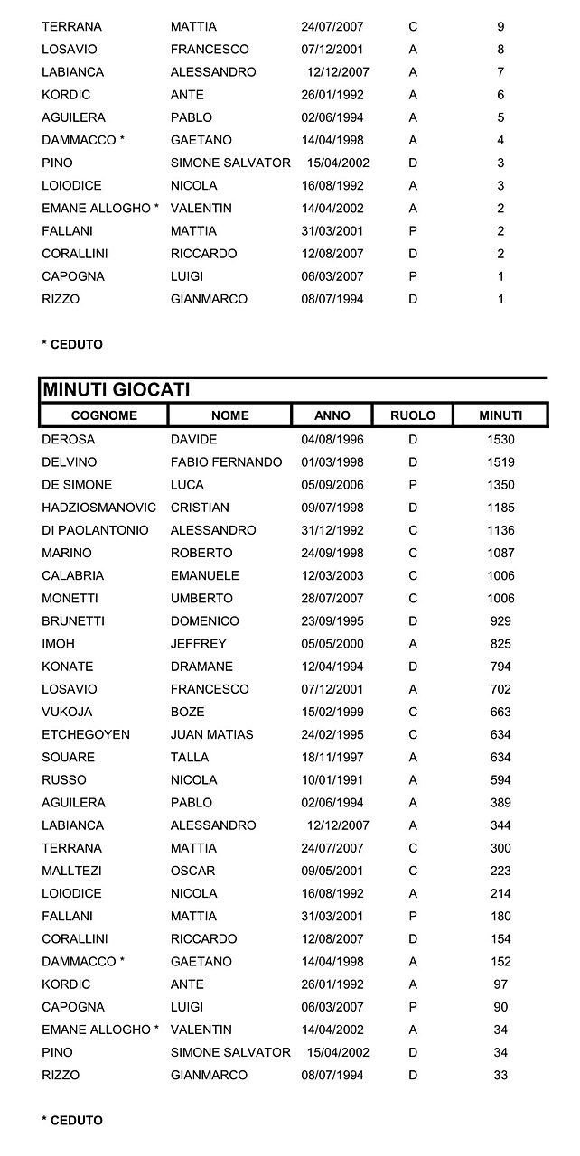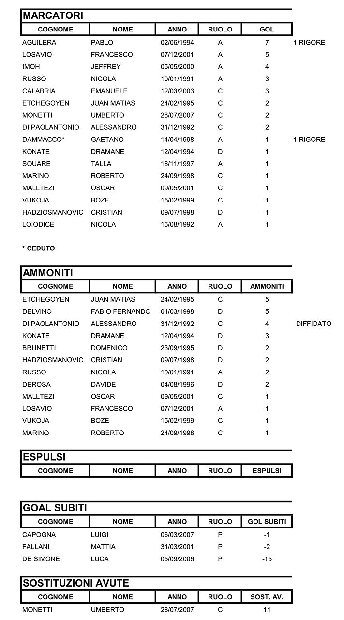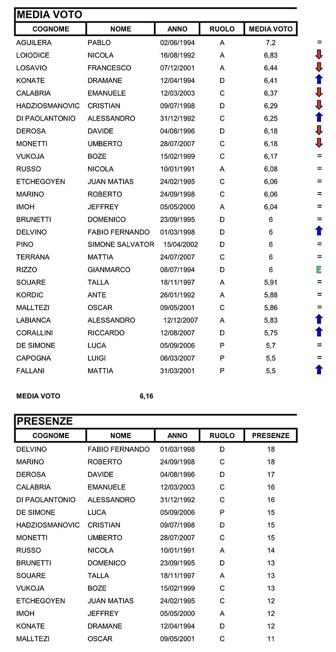 Taranto, statistiche e medie voto dopo la 18a Giornata