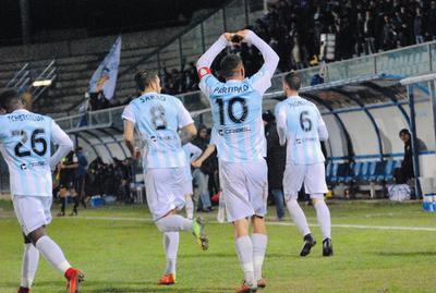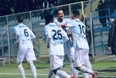 Partipilo porta in vantaggio i biancazzurri nel primo tempo, pareggio di Papaoni su rigore nella ripresa. Espulso Sirri
