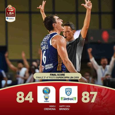 Basket: Supercoppa, Brindisi rimonta Cremona e chiude terzo