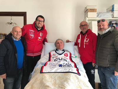 Il capitano Gabriel Gonzalez e i dirigenti Ricatti, Appeso e Marzulli hanno donato una maglia autografata al tifoso tarantino malato di Sla. Una grossa emozione per tutti