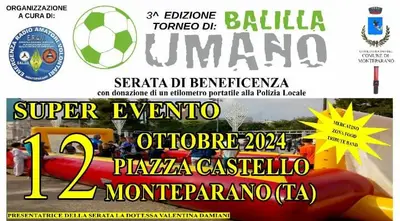 Monteparano: Evento di beneficenza, sabato 12 ottobre, in Piazza Castello