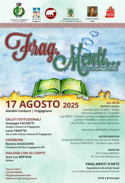 Si è svolta domenica 17 agosto 2025, nei Giardini Carducci di Fragagnano, la terza edizione del Frag.Menti Book Festival, rassegna culturale...