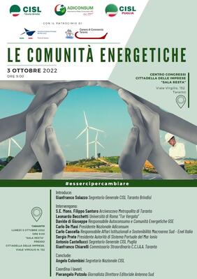 Eventi: ‘Le comunità energetiche’, convegno Cisl Taranto Brindisi