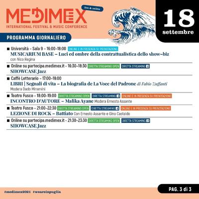 Taranto: Medimex, programma completo di sabato 18 settembre