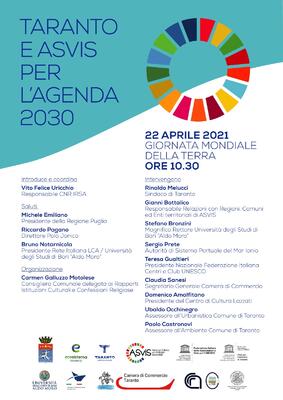 Taranto e Asvis per Agenda 2030, webinar per celebrare Giornata Mondiale della Terra