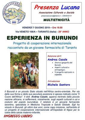 Andrea Casale, farmacista tarantino, racconta i suoi anni in Burundi