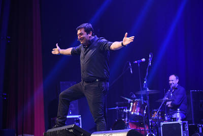 Un talentuoso tutto pepe che coinvolge il pubblico in uno show scritto insieme a Marco Terenzi e Giuliano Rinaldi