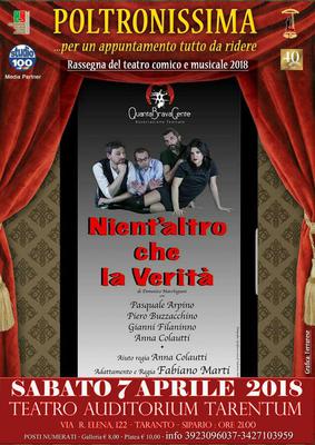 Sabato 7 aprile, al Tarentum, la compagnia Quanta Brava Gente porta in scena, in prima assoluta in Puglia, la commedia di Domenico Marchigiani ‘Nient’altro che la verità‘