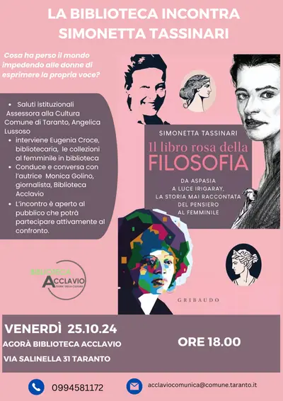 Taranto, talk: ‘La biblioteca incontra Simonetta Tassinari’