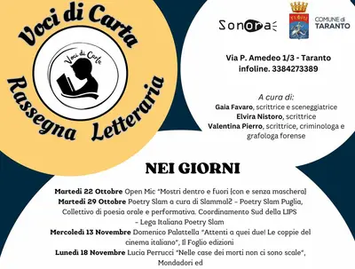 Il primo appuntamento della rassegna “Voci di Carta”, patrocinata dal Comune di Taranto e dall’Assessorato alla Cultura, ha riscosso grande...