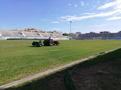 [Fotonotizia] Brindisi: A lavoro per far rifiorire il manto erboso del ‘Fanuzzi’