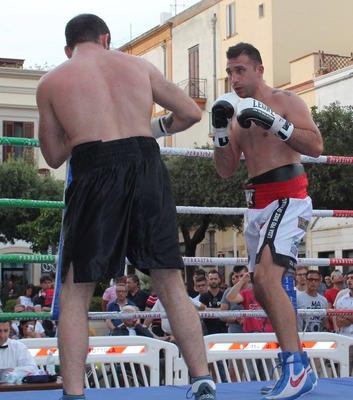 Sul ring della sua Mottola, davanti ad una piazza XX Settembre stracolma di tifosi e seguaci della sua scuola pugilistica, il superwelter Francesco...