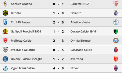 Oltre alla goleada dell’Avetrana sul ‘povero’ Galatina, parità tra Omnia Bitonto e UC Bisceglie: valide entrambe per la 27a Giornata