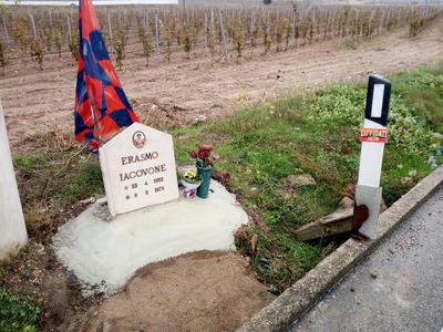 Un’auto finisce fuoristrada e distrugge la lapide di Iacovone