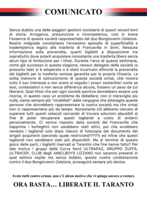 Comunicato stampa Taranto Supporters