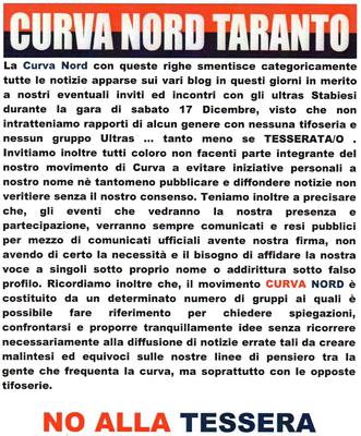 Taranto: Curva Nord, "Nessun incontro con gli stabiesi"