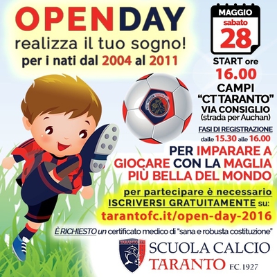 Taranto: Settore giovanile, sabato 4 giugno il 4° Open Day