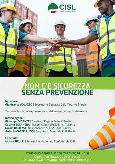 “Non c’è sicurezza senza prevenzione” è l’argomento che tratterà il Consiglio Generale della Cisl Taranto Brindisi, convocato in seduta...