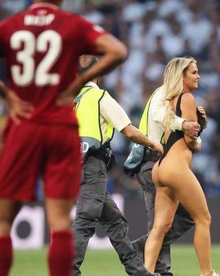 Kinsey Wolanski, 23 anni, modella che ha posato per Maxim, Sports Illustrated e FHM, ha fatto irruzione sul terreno di gioco durante la finale tra Tottenham e Liverpool