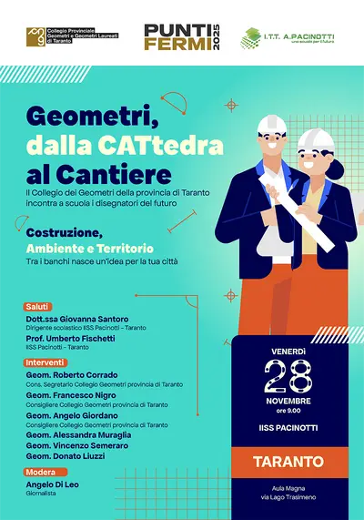 Venerdì 28 novembre 2025, alle ore 9.30, l’IISS Pacinotti di Taranto ospiterà la terza tappa del percorso promosso dal Collegio dei Geometri e...