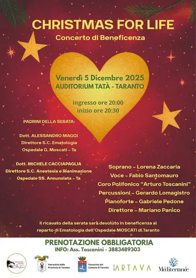 Sarà l’auditorium TaTÀ, il prossimo 5 dicembre 2025, a ospitare il concerto di beneficenza “Christmas for life”, iniziativa organizzata...
