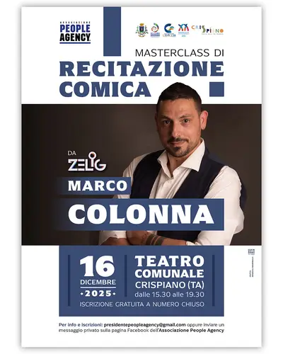 Il Teatro Comunale di Crispiano ospiterà martedì 16 dicembre, dalle 15.30 alle 19.30, una masterclass di recitazione comica condotta da Marco...