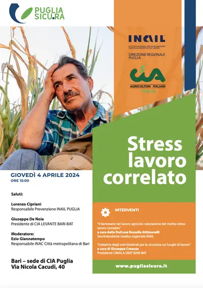 Stress lavoro correlato in agricoltura, torna a Bari progetto SICU.RA. di CIA Puglia e INAIL