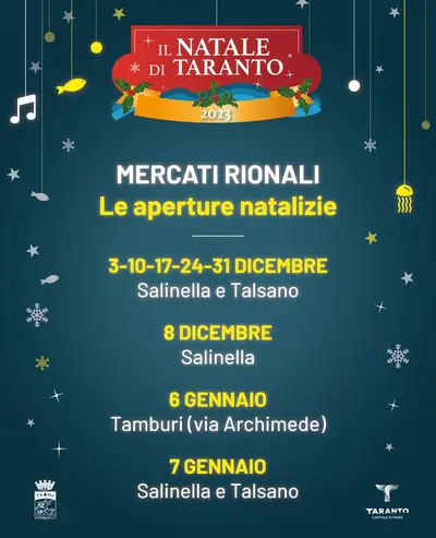 Taranto, aperture straordinarie mercati rionali nel periodo natalizio