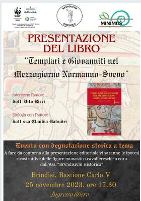 Sarà presentato il 25 novembre, alle 17.30, nei locali ipogei del Bastione Carlo V di Brindisi