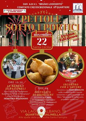 Nasce una nuova manifestazione nel giorno di Santa Cecilia al quartiere Salinella: Pettole sotto i portici. Prima edizione organizzata dalla OdV...