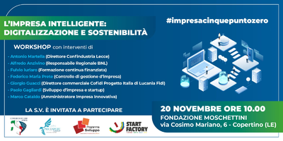 L’impresa intelligente: digitalizzazione e sostenibilità, workshop a Copertino
