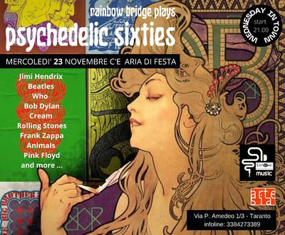 Mercoledì 23 novembre, ore 21.00, al Sonora - Art Music Drinks & Food (via P. Amedeo 1/3 - Taranto): Rainbow Bridge plays Psychedelix Sixties,...