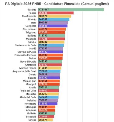 Taranto sempre prima in classifica, anche per la capacità di intercettare finanziamenti per la digitalizzazione dei servizi amministrativi. Tra i...