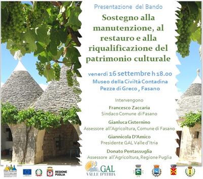 GAL Valle d’Itria: Bando per valorizzare patrimonio architettonico rurale pugliese