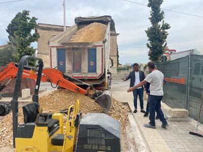 Visita dell'assessore ai Lavori Pubblici Mattia Giorno al cantiere per il tombamento dei bagni pubblici in piazza della Vittoria a Talsano. I lavori,...