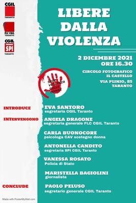 Taranto: Libere dalla violenza, il 2 dicembre dibattito promosso da CGIL