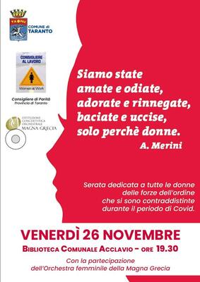 Venerdì 26 novembre, alle 19.30, nella Biblioteca comunale “Acclavio” la Consigliera di Parità, avvocato Gina Lupo, renderà omaggio alle donne...