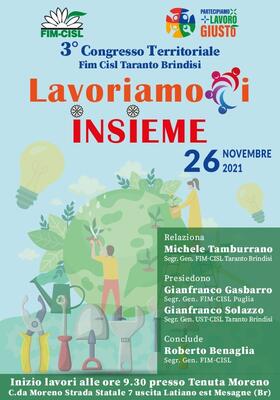 ‘LavoriamoCi Insieme’ tema 3° Congresso Fim Cisl Taranto Brindisi