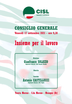 E’ convocato, in presenza e nel rispetto delle regole di distanziamento sociale, il Consiglio generale della Cisl Taranto Brindisi, per domani...