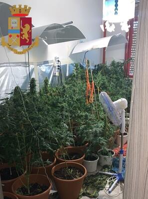 Scoperta dai Falchi della Squadra Mobile, in un appartamento di via Mediterraneo, una ben attrezzata serra per la coltivazione della marijuana....