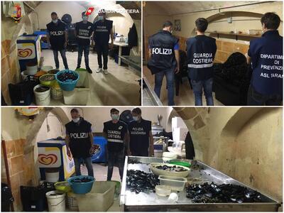 Taranto: Sequestrati 300 kg di cozze in un laboratorio clandestino