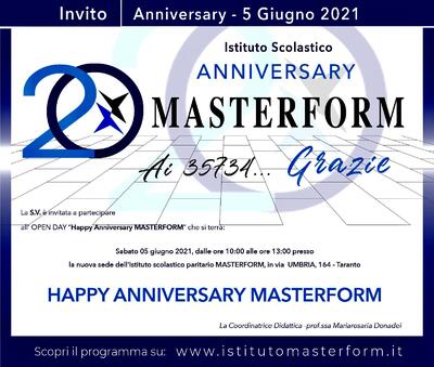 “Felice anniversario Masterform”. E’ in programma per sabato 5 giugno l’open day per festeggiare i primi vent’anni della scuola paritaria...