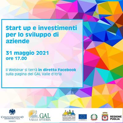 Start up e investimenti per lo sviluppo di aziende, webinar presentazione il 31 maggio