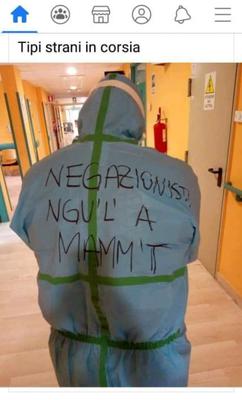 “Negazionisti, n… a m…” così, con una frase decisamente colorita scritta a mano sulla sua tuta protettiva in...