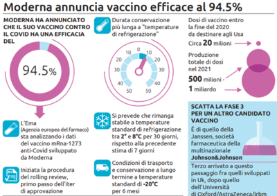 Coronavirus: Moderna, ‘Nostro vaccino efficace al 94%’