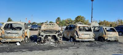 Nel parcheggio dinanzi alla portineria imprese dello stabilimento ArcelorMittal di Taranto sono state bruciate otto automobili...