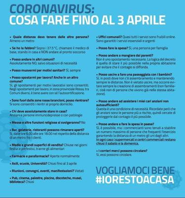 Fra le misure di prevenzione del Decreto Ministeriale dell’8 marzo 2020 il punto C dell’art.3 recita: "Si raccomanda di...