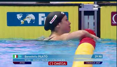 Benedetta Pilato stellare: record italiano nei 50 rana in 29"98 nelle batterie della nottata. Prima azzurra di sempre a scendere sotto il...