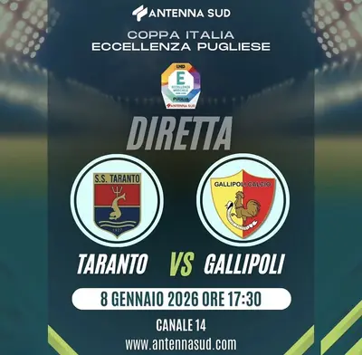 Taranto-Gallipoli: diretta tv e streaming su Antenna Sud