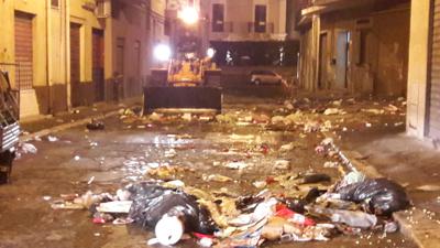 Solita notte di follia tra cassonetti bruciati e rifiuti di ogni genere lanciati dalle abitazioni